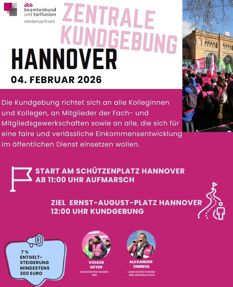 Wir gehen am 4. Februar 2026 gemeinsam in Hannover auf die Straße. Treffpunkt ist um 11:00 Uhr auf dem Schützenplatz, die zentrale Kundgebung beginnt um 12:00 Uhr am Ernst-August-Platz. Je mehr wir sind, desto stärker ist das Signal.