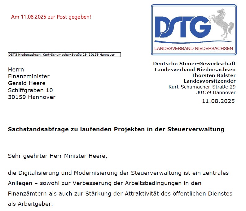 Das gesamte Anschreiben der DSTG vom 11.08.2025 ist HIER zu finden.